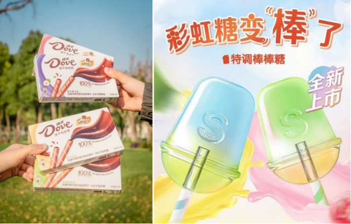 德芙脆卷餅干紙質(zhì)包裝、彩虹?糖紙棒棒棒糖(左圖來(lái)源:上海吃喝玩樂(lè)公司)