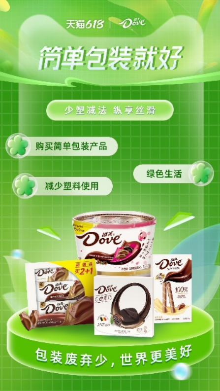 旗下德芙部分可持續(xù)包裝產(chǎn)品上線天貓618“簡(jiǎn)單包裝就好”專區(qū)