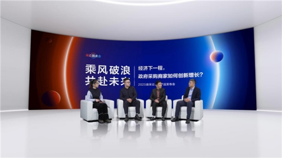 在政采云產(chǎn)品發(fā)布會(huì)“采云圓桌會(huì)”上,來(lái)自聯(lián)想集團(tuán)中國(guó)區(qū)商用大客戶政采電商業(yè)務(wù)負(fù)責(zé)人宿博、浙江時(shí)代新銳科技有限公司董事長(zhǎng)兼總經(jīng)理王翔、杭州商廬貿(mào)易有限公司總經(jīng)理歐邦海、政采云有限公司商家業(yè)務(wù)部總經(jīng)理王銳敏共同探討了“經(jīng)濟(jì)下一程,政府采購(gòu)商家如何創(chuàng)新增長(zhǎng)”的話題,各自分享了數(shù)字化轉(zhuǎn)型過(guò)程中的經(jīng)驗(yàn)。