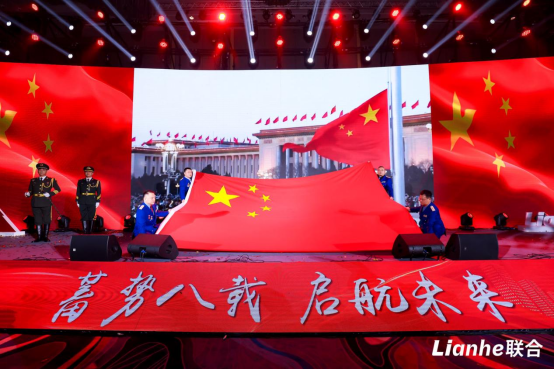 盛典當(dāng)中舉行了授旗和升國旗儀式,曾于2023年3月4日在天安門廣場(chǎng)上空飄揚(yáng)過的國旗、于2023年3月4日在天安門廣場(chǎng)上揮舞過的“天下第一刀”,帶著國家榮譽(yù)在聯(lián)合企業(yè)集團(tuán)八周年慶典上繼續(xù)履行了它們的使命。整場(chǎng)儀式莊嚴(yán)肅穆,現(xiàn)場(chǎng)嘉賓面向鮮紅的國旗一同唱響國歌。激昂嘹亮的國歌,激蕩拳拳報(bào)國之心,聯(lián)合企業(yè)集團(tuán)也將用更堅(jiān)實(shí)堅(jiān)定的步履、更振奮人心的號(hào)召,升華“企業(yè)家精神”,汲取前行的力量,融入經(jīng)濟(jì)社會(huì)發(fā)展大局,使其成為奮進(jìn)新征程的時(shí)代號(hào)角。