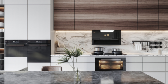 下方烹飪區(qū)爐頭火力達(dá)到4.5kw,灶具加上了隔熱聚能罩,夏天開大火也不用擔(dān)心太燙手,設(shè)計(jì)很貼心。消毒柜款的機(jī)柜有150L的大空間,通過紫外線+臭氧雙重消殺,除菌率可達(dá)99.9%,加上低溫雙效烘干排氣的設(shè)計(jì),保持內(nèi)部干爽,衛(wèi)生健康;如果選擇蒸烤箱款,蒸烤區(qū)運(yùn)用溫濕雙控科技,通過精準(zhǔn)控溫、自主控濕實(shí)現(xiàn)大師級(jí)烹飪效果,同時(shí)擁有煙灶、煙蒸等多種智能聯(lián)動(dòng)。