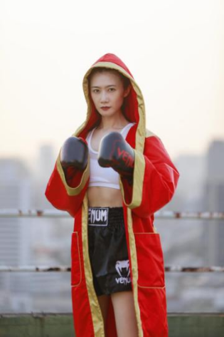 于是我在想如果是參加比賽的話,那么就有可能會(huì)遇到在全球范圍之內(nèi)能跟我有同樣量級(jí)的職業(yè)拳擊手。果不其然,這一次去泰國比賽就遇到了Siritorn,她也是108磅量級(jí)的職業(yè)拳擊手,從小訓(xùn)練泰拳,所以經(jīng)由這我就開啟了自己的職業(yè)比賽之路。我覺得拳擊比賽對(duì)我來講就是一次拳擊的集中檢驗(yàn),7年訓(xùn)練的結(jié)果,將在這一次的比賽當(dāng)中完成一次考試。