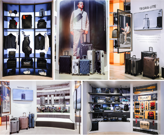 (從左至右依次 — 上層:Alpha系列,19 Degree系列,Tegra-Lite?系列? 下層:Tegra-Lite?系列,Alpha Bravo系列及TUMI+配件系列)