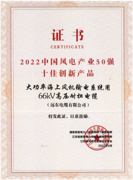 該系列產(chǎn)品主要應(yīng)用于海上大功率風(fēng)電機(jī)組電力傳輸,不僅可以有效地提升傳輸容量和效率,降低系統(tǒng)損耗,還可以實(shí)現(xiàn)全壽命周期內(nèi)安全可靠運(yùn)行,是大功率海上風(fēng)電機(jī)組亟需的核心部件,也是未來海上大功率風(fēng)力發(fā)電技術(shù)發(fā)展趨勢。并成功應(yīng)用于華電臺州玉環(huán)、福清興化灣等多個(gè)海上風(fēng)電場等項(xiàng)目,還被授予了國家工信部頒發(fā)的“制造業(yè)單項(xiàng)冠軍”、2022中國風(fēng)電產(chǎn)業(yè)50強(qiáng)“十佳創(chuàng)新產(chǎn)品”等多項(xiàng)榮譽(yù),獲得了從國家到行業(yè)的高度認(rèn)可,夯實(shí)了公司在風(fēng)電電纜行業(yè)的領(lǐng)軍地位。