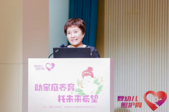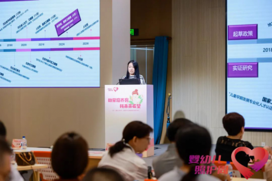 ▲國家衛(wèi)生健康委婦幼健康司副司長沈海屏做《兒童早期發(fā)展與嬰幼兒養(yǎng)育照護(hù)》主旨報(bào)告