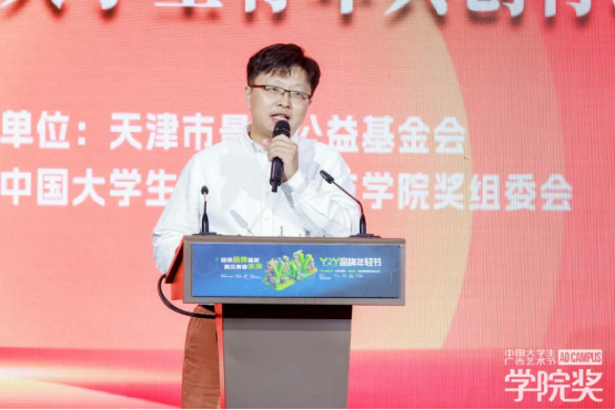 悅康藥業(yè)股份有限公司創(chuàng)始人、董事長于偉仕先生致辭。悅康藥業(yè)成立于2001年,是以高端化學(xué)藥為主導(dǎo)的大型醫(yī)藥企業(yè)集團、是以研發(fā)創(chuàng)新為驅(qū)動的國家級高新技術(shù)企業(yè)。悅康藥業(yè)致力于為百姓研發(fā)用的起的好藥,始終在堅守“營造全球喜悅,關(guān)愛人類健康”的愿景下不斷前行。今年6月,悅康藥業(yè)首次牽手學(xué)院獎,通過青年共創(chuàng),促進健康意識的傳遞,提升品牌傳播的廣度與深度,以及在年輕群體當中的認知度和美譽度;通過年輕人的創(chuàng)意,讓品牌更有生命力。悅康藥業(yè)將致力于品牌年輕化工程,在校企合作、產(chǎn)教融合領(lǐng)域作出更多探索。