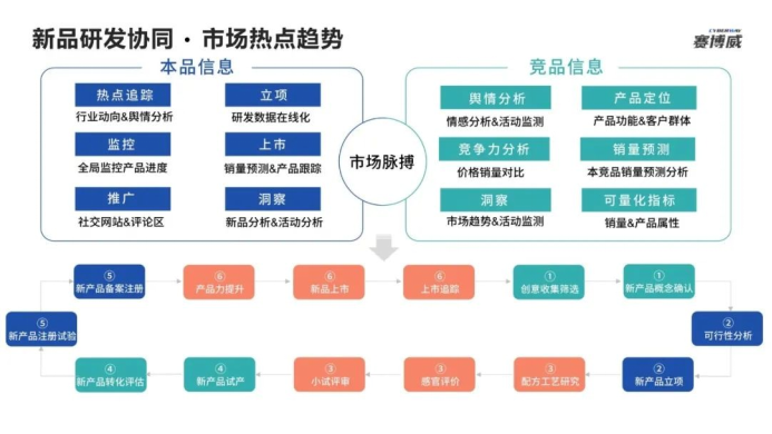 賽博威新品研發(fā)協(xié)同平臺目前已經(jīng)助力眾多頭部快消企業(yè)在新品研發(fā)過程中,洞察市場趨勢,找準(zhǔn)新品方向,規(guī)范化新品研發(fā)流程,提高新品研發(fā)效率,實(shí)施新品上市追蹤,把握市場脈搏,搶占市場份額。