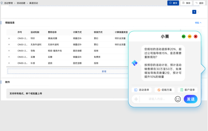 賽博威新一代多元營銷費(fèi)用管理,是TPM也不止是TPM,通過靈活配置,滿足企業(yè)營銷數(shù)字化全鏈路個性化需求。應(yīng)用最新AI技術(shù)應(yīng)用,減少手工報表,讓人機(jī)溝通更順暢,讓業(yè)務(wù)人員輕松、快速、準(zhǔn)確地獲取所需信息。