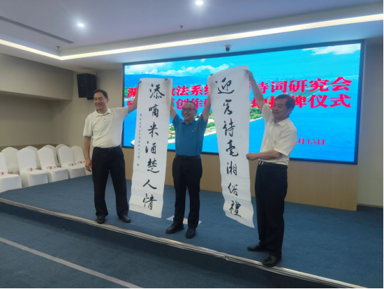 “迎客詩毫湘俗禮,添嘀米酒楚人情”。詩詞分會主席陳嶺為嘀嘀酒店盛情賦詩一首,并由研究會副會長劉慶富和書法分會副主席吳若順寫成書法作品,現場贈送給嘀嘀酒店,將活動氣氛推向高潮。