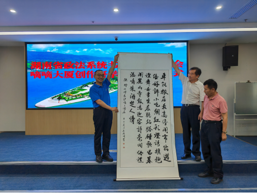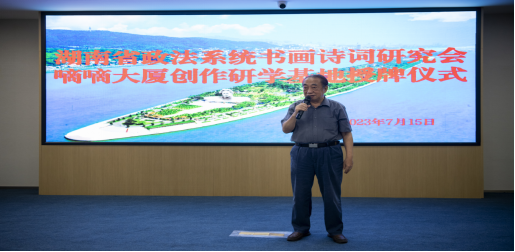 “全面建設社會主義現代化國家,必須堅持中國特色社會主義文化發(fā)展道路,增強文化自信。文化是民族之根。應該讀好‘兩本書’,一本是有字的經典之書,一本是無字的實踐之書。嘀嘀大廈緊鄰長沙火車站,來往交通方便,文化氣息濃厚,在長沙法官文聯學雷鋒書畫工作站的基礎上,進一步成立政法文化創(chuàng)作研學基地,開展各種有意義的詩詞書畫文藝活動,可以助力實現‘以文興商、以商促文’的雙贏目的,為建設社會主義文化強國貢獻出我們應有的心智和力量。這樣的政法文化創(chuàng)作研學基地多多益善。”彭對喜對活動給予高度肯定。