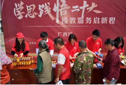 4月25日-26日,深交所聯(lián)合海通證券、廣西證券期貨基金業(yè)協(xié)會、證券時報舉辦的“學思踐悟二十大 投教服務啟新程”投資者服務專項活動走進廣西欽州市浦北縣。在深入開展學習新時代中國特色社會主義思想主題教育之際,以多載體、多角度、多形式走進鄉(xiāng)村小學、村間打谷場、田間地頭、紅色教育基地,以群眾喜聞樂見的方式展開面對面宣傳交流,推動投資者教育服務進一步走進鄉(xiāng)村基層,助力鄉(xiāng)村振興。
