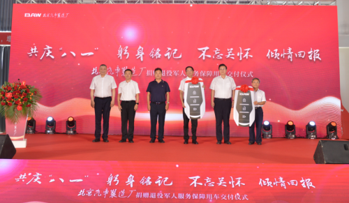 7月28日,北京汽車制造廠在青島總部基地隆重舉行“共慶‘八一’,躬身銘記,不忘關(guān)懷,傾情回報(bào)”捐贈退伍軍人服務(wù)保障用車交付儀式,以實(shí)際行動(dòng)做出擁軍表率,為建軍96周年獻(xiàn)禮。原空軍指揮學(xué)院副院長朱和平少將、中國退役軍人就業(yè)創(chuàng)業(yè)服務(wù)促進(jìn)會理事長王義少將、中國退役軍人就業(yè)創(chuàng)業(yè)服務(wù)促進(jìn)會常務(wù)副理事長林崗少將、中國汽車工業(yè)協(xié)會常務(wù)副會長兼秘書長付炳鋒、山東省退役軍人事務(wù)廳副廳長劉興磊以及各界領(lǐng)導(dǎo)嘉賓共計(jì)200余人出席了本次儀式,北京汽車制造廠董事長陸付軍在現(xiàn)場遞交了此次捐贈的BAW卡路里皮卡新車鑰匙。